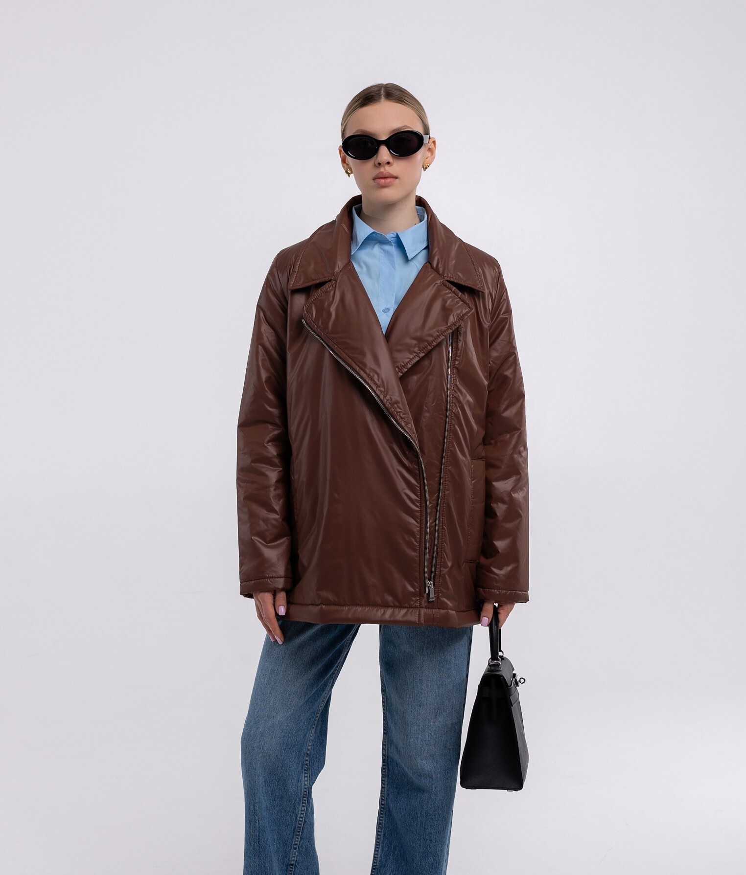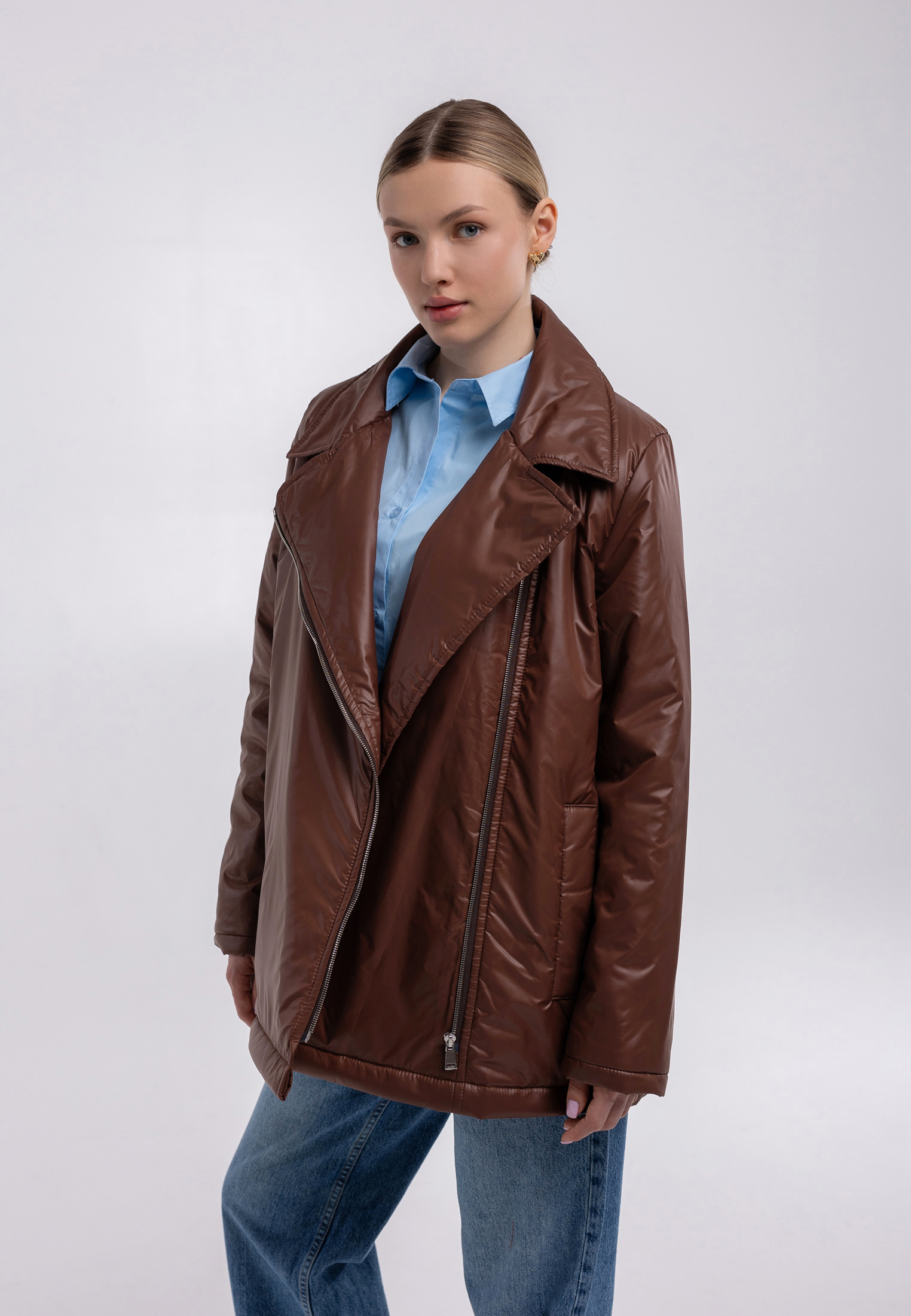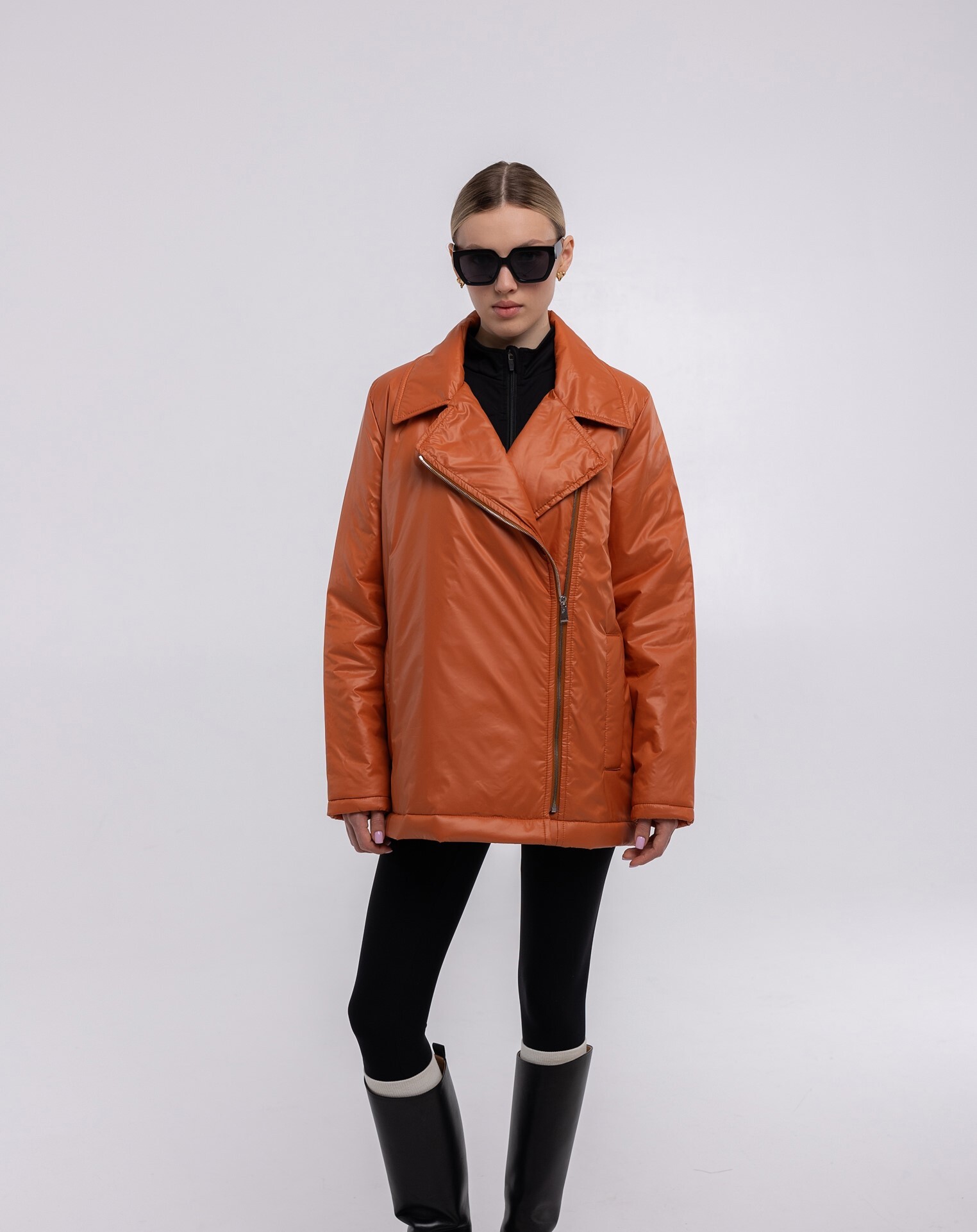 Куртка-косуха прямого кроя из плащёвки с водоотталкивающей пропиткой. Имеет лёгкий, деликатный блеск. В качестве утеплителя использован современный тонкий и очень лёгкий материал. Будет комфортно при температуре от +10 до -10 Застёжка на молнию, карманы "листочка"